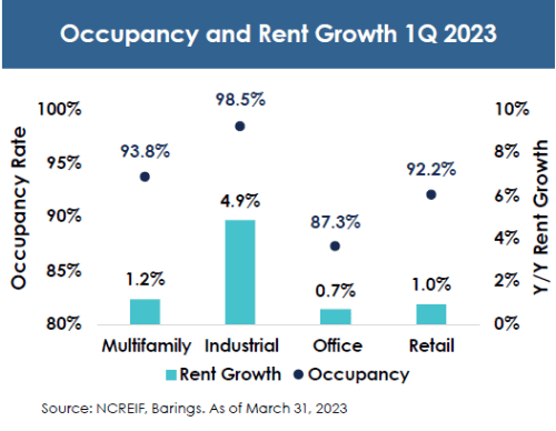 (approximately 23 percent[2]). Despite the larger exposure on the private side, not all office properties are created equal. Medical office and Life Science office have been resilient. Fundamentals in other areas of the commercial real estate market remain favorable as well, with occupancy rates above 90 percent and positive year-over-year rent growth.[3]
